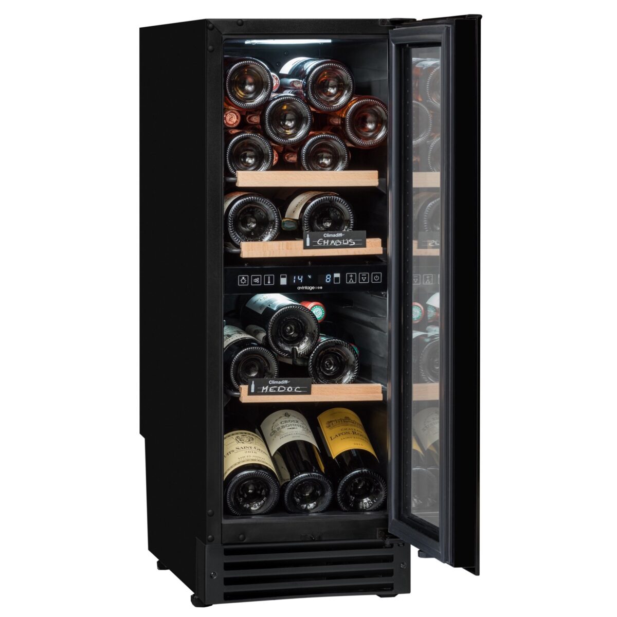 - Temperatuurid: ülemine tsoon: 5 °C kuni 12 °C / alumine tsoon: 12 °C kuni 20 °C