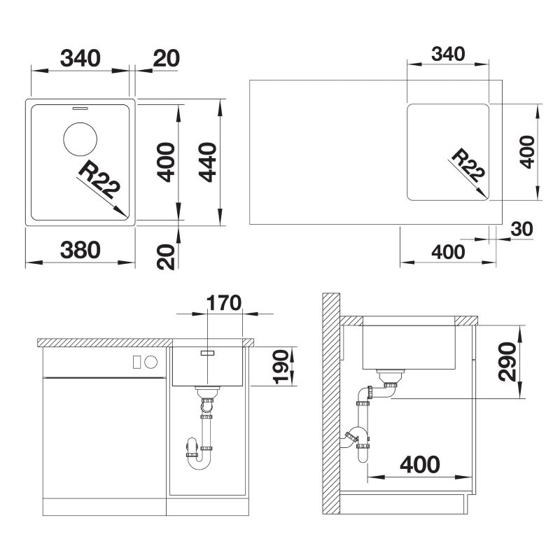 BLANCO ANDANO 340-U roostevaba valamu High End segmendi tooteperekonda kuulub lai valik kvaliteetseid ja hoolikalt viimistletud roostevabast terasest valmistatud valamuid. Valamute valmistamisel on kasutatud uusimat tootmistehnoloogiat, mille tulemuseks on stiilne ja praktiline valamu disain (R22mm). Iga detail on hoolikalt viimistletud, olgu selleks ainulaadne InFino põhjaklapp või elegantne CoverFlow ülevool.