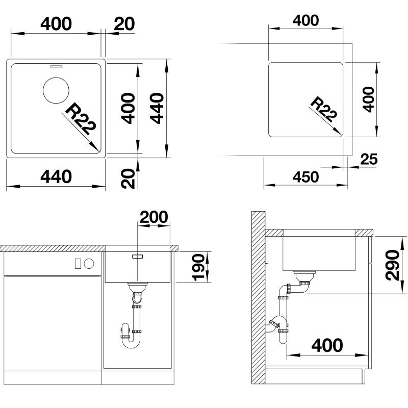 - Valamu mõõdud (L x S): 440 x 440 mm