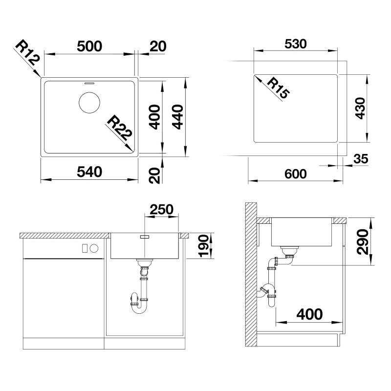 - Valamu mõõdud (L x S): 540 x 440 mm