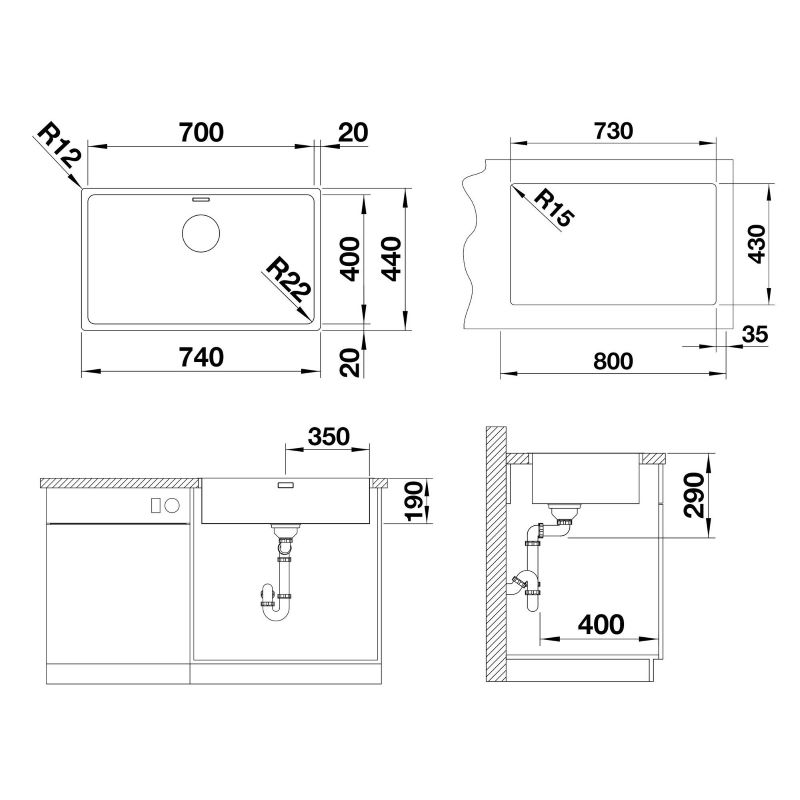 - Valamu mõõdud (L x S): 740 x 440 mm