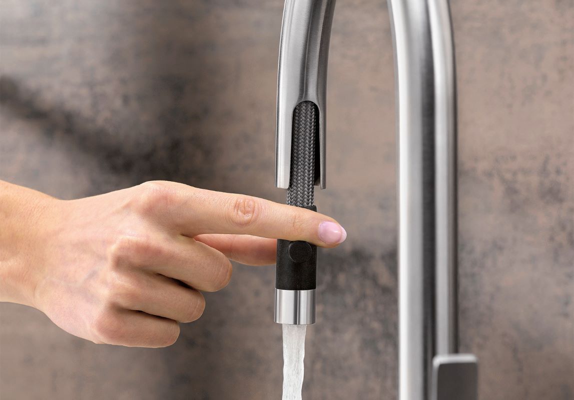Peidetud väljatõmmatava pihustiga.