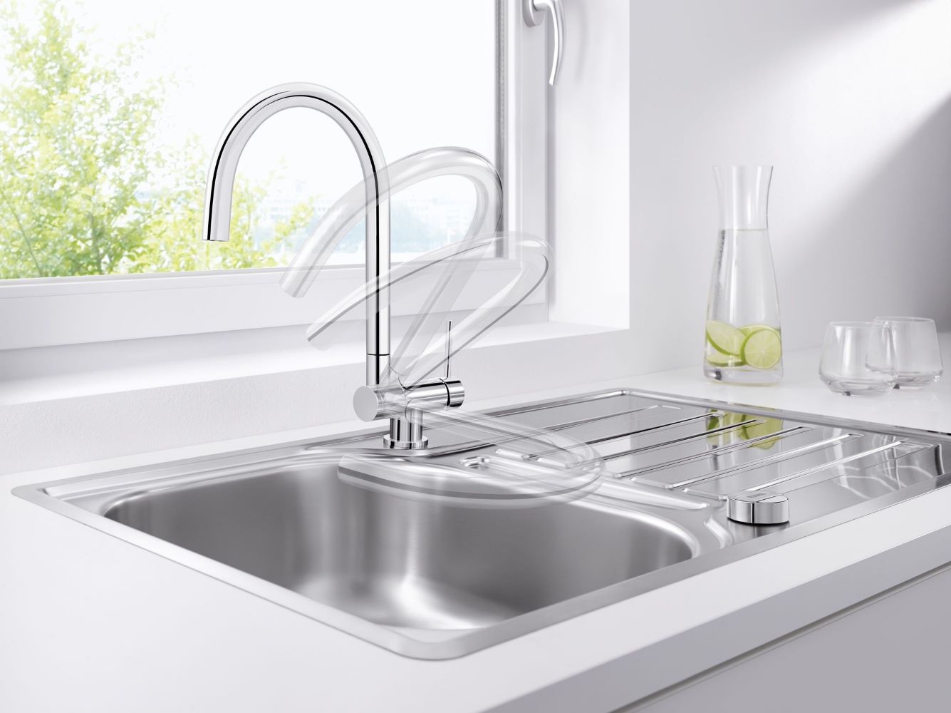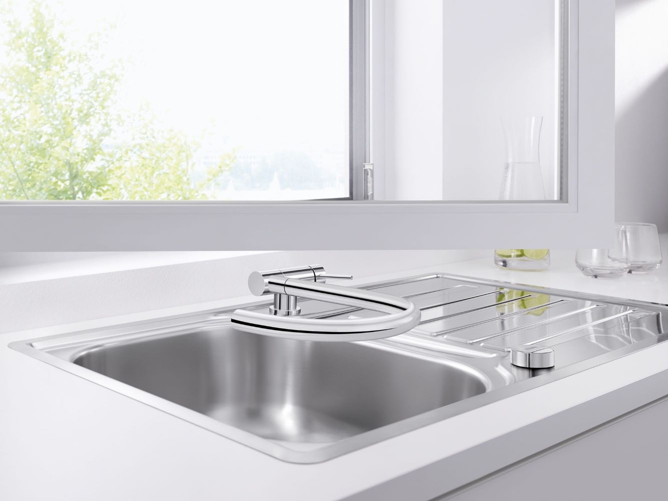 BLANCO CORESSA-F R köögisegisti on ideaalne lahendus neile, kes otsivad akna ette liikumiseks hingedega segistit. Mugav voltimismehhanism võimaldab segisti sekunditega tagasi tõmmata, nii et väljalaskeava kaob täielikult kaussi, samas kui ülejäänud kinnitus on vaid mõne sentimeetri kõrgune. Polsterdatud voltimisprotsess ja turvaline lukustus tagavad, et teie uue segisti mehhanism töötab ka pika aja jooksul kindlalt. CORESSA-F-i saab tarnida nii vasakul kui ka paremal asuva juhthoovaga, olenevalt selle paigalduskohast. Kõrge kaarjas väljalaskeava muudab suurte pottide ja vaaside täitmise lihtsamaks ning loob ka teie kööki elegantse disainiaktsendi.