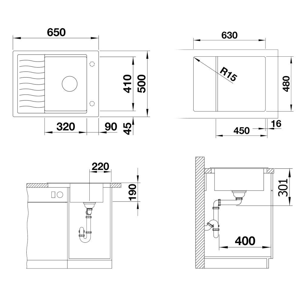 • Valamu mõõdud (L x S): 650 x 500 mm