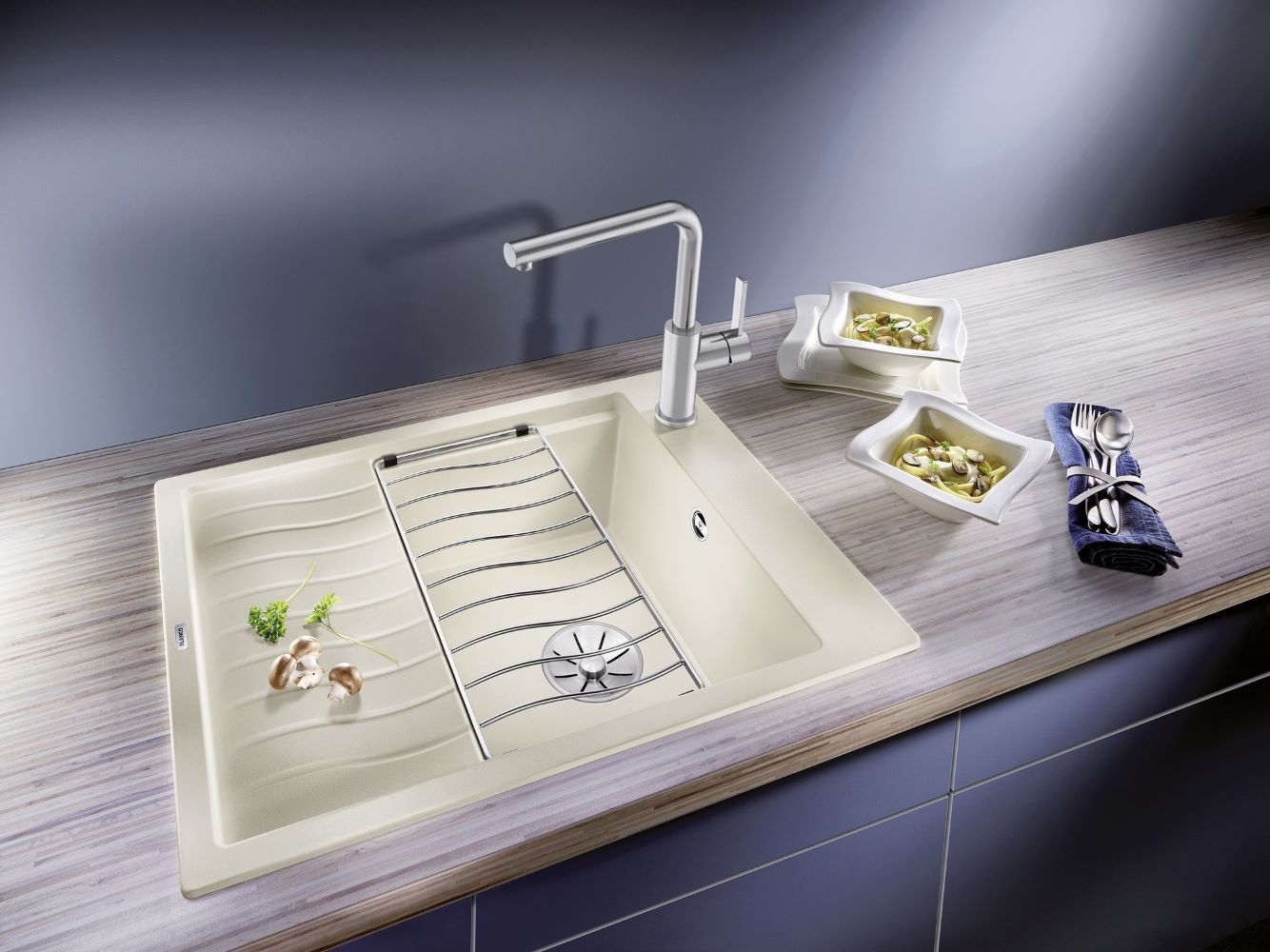BLANCO ELON 45 S valamu on muljetavaldav oma ebatavalise välimuse ja suure mahutavuse poolest, hoolimata kompaktsetest mõõtmetest. Sellisena sobib see ideaalselt väikestesse köökidesse. Kogege ELON`i perekonna kaasaegset, lainekujulist ja hoolikalt läbimõeldud disaini. Kuna ELON on saadaval erineva laiusega kapi jaoks ja seda saab paigaldada ümberpööratavalt, saate kausi paigutada vasakule või paremale – kuidas teie individuaalsetele vajadustele või ruumiolukorrale kõige paremini sobib. Tänu küljele paigutatud segisti kraaniservale töötab ruumikas kraanikauss hästi ka akna poole paigutatuna, kuna segisti ei takista akna avanemist. Üks valamu eripära on liigutatav roostevabast terasest nõrutusrest, mis on standardvarustuses. Elegantselt kumera resti abil saab nõrutusala hõlpsalt pikendada. Valikulised tarvikud, nagu praktilised lõikelauad ja multifunktsionaalne kurn, muudavad toidu valmistamise palju lihtsamaks.