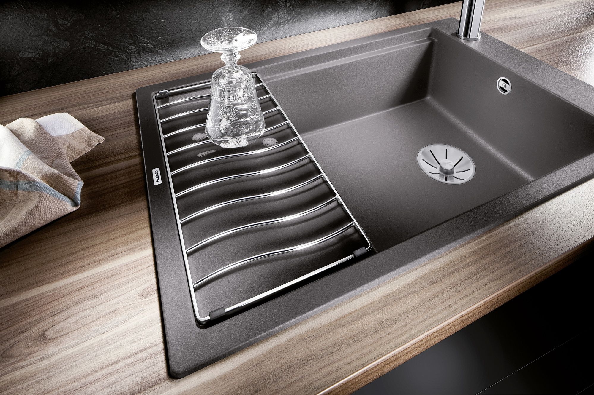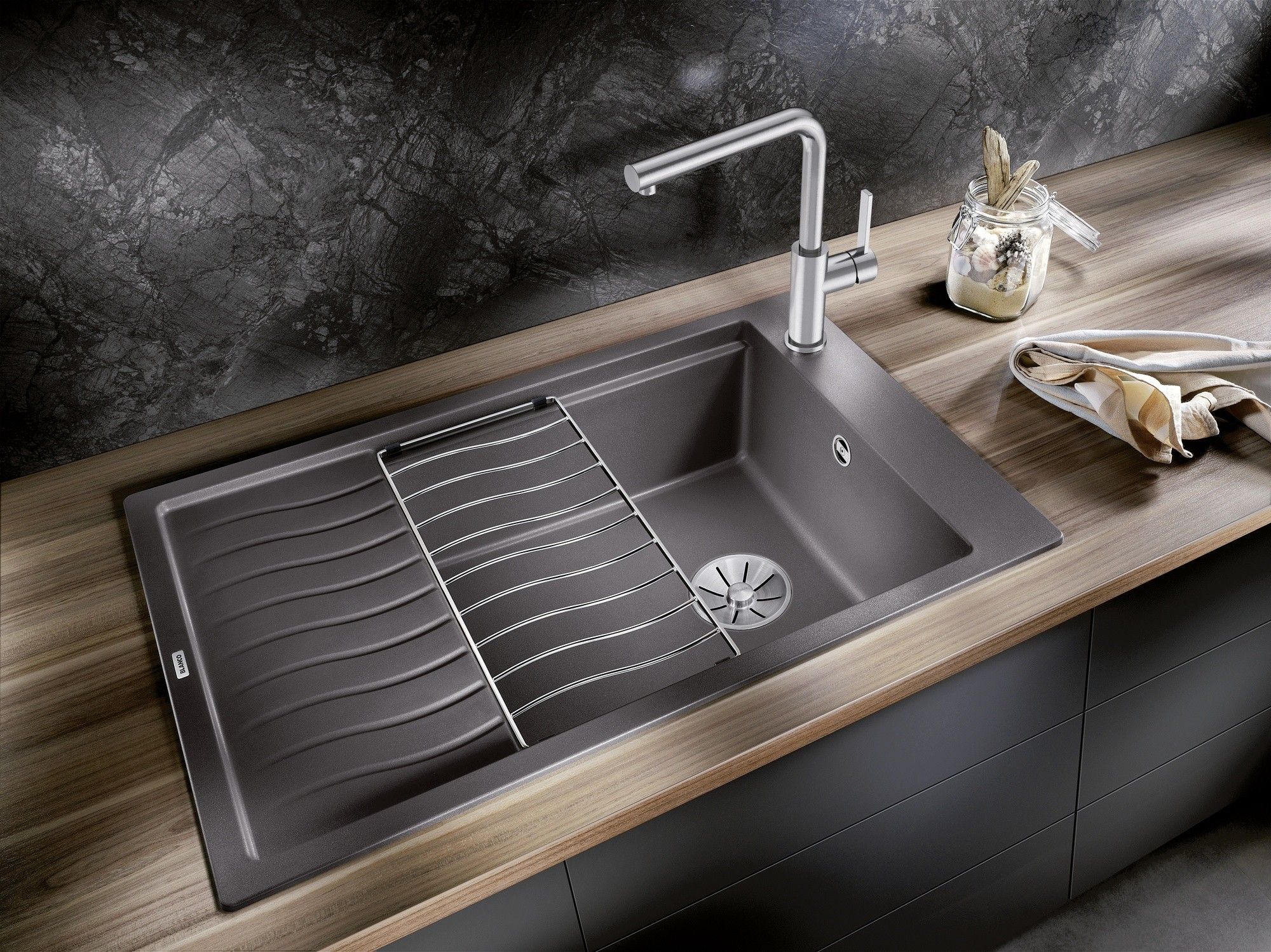 BLANCO ELON XL 6 S valamu on muljetavaldav oma ebatavalise välimuse ja suure mahutavuse poolest, hoolimata kompaktsetest mõõtmetest. Sellisena sobib see ideaalselt väikestesse köökidesse. Kogege ELON`i perekonna kaasaegset, lainekujulist ja hoolikalt läbimõeldud disaini. Kuna ELON on saadaval erineva laiusega kapi jaoks ja seda saab paigaldada ümberpööratavalt, saate kausi paigutada vasakule või paremale – kuidas teie individuaalsetele vajadustele või ruumiolukorrale kõige paremini sobib. Tänu küljele paigutatud segisti kraaniservale töötab ruumikas kraanikauss hästi ka akna poole paigutatuna, kuna segisti ei takista akna avanemist. Üks valamu eripära on liigutatav roostevabast terasest nõrutusrest, mis on standardvarustuses. Elegantselt kumera resti abil saab nõrutusala hõlpsalt pikendada. Valikulised tarvikud, nagu praktilised lõikelauad ja multifunktsionaalne kurn, muudavad toidu valmistamise palju lihtsamaks.