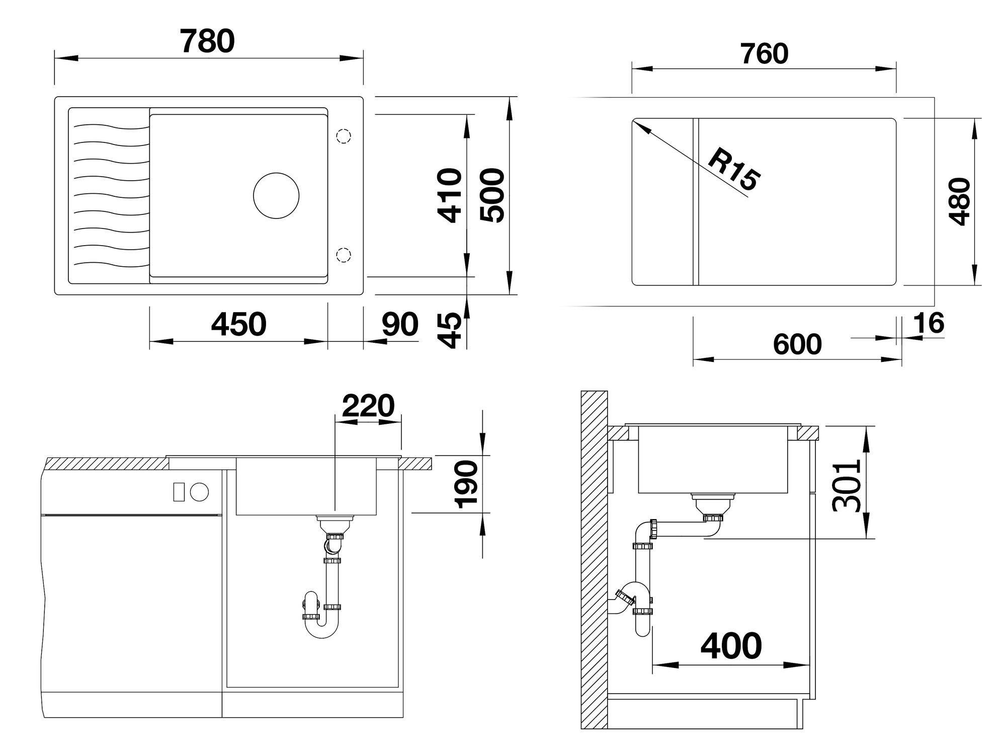 - Valamu mõõdud (L x S): 780 x 500 mm
