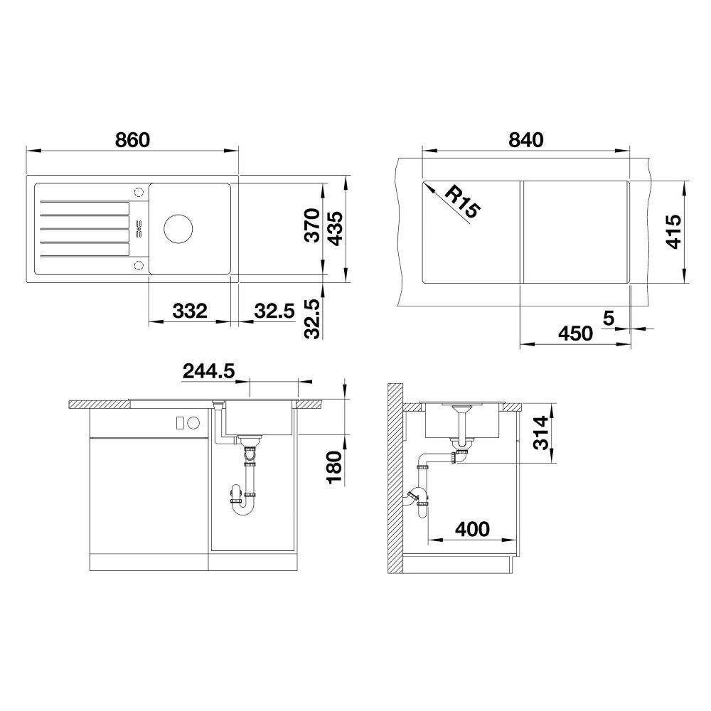 - Valamu mõõdud (L x S): 860 x 435 mm