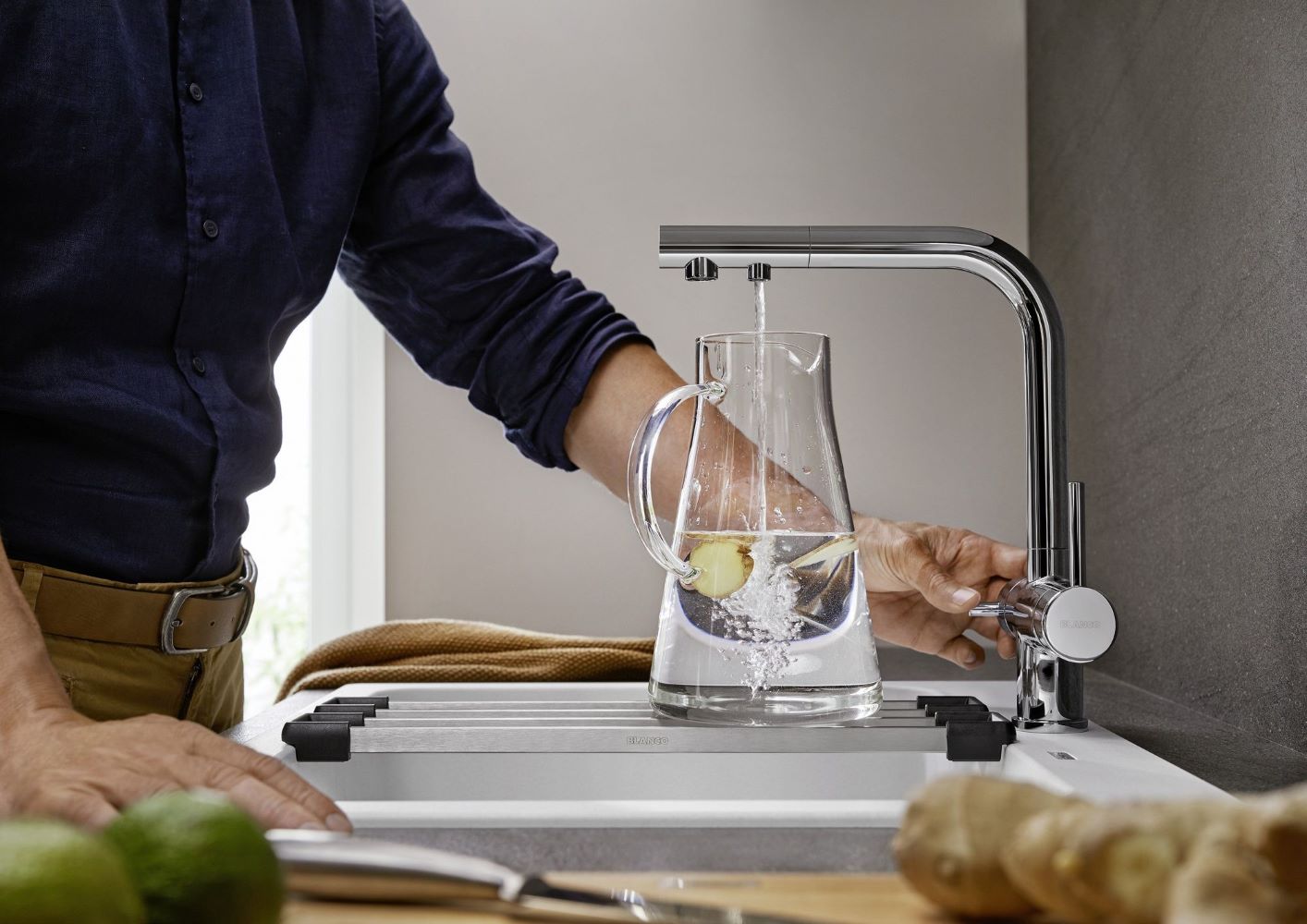 BLANCO FONTAS II Filter köögisegisti kroom pakub kolme võimalust: soe, külm ja filtreeritud külm vesi. Filterkraan BLANCO FONTAS-S II on tähelepanuväärne sooja ja külma vee ja filtreeritud vee väljatõmmatava tila poolest. See tila võimaldab paindlikku kasutamist valamu ümber, muutes kodumasinate, nagu veekeetja või kohvimasina mahuti, filtreeritud veega täitmise lihtsaks. Värske lahendus, mis maitseb suurepäraselt. Parempoolsed kaks eraldiseisvat külma ja sooja vee juhthooba ning vasakul asuv filtreeritud vee juhthoob tagavad, et saate alati ja igal hetkel täpselt sellist vett, mida soovite.