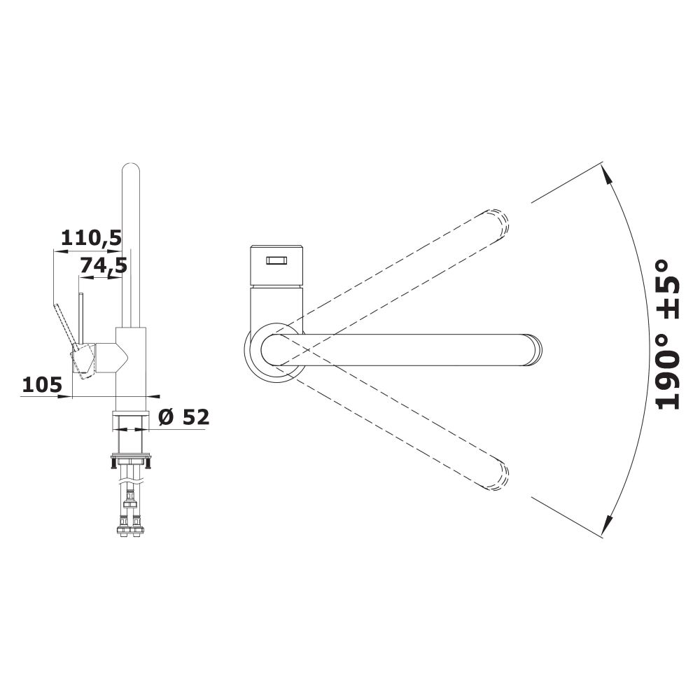 - 190° pööratav tila suurema ulatuse tagamiseks