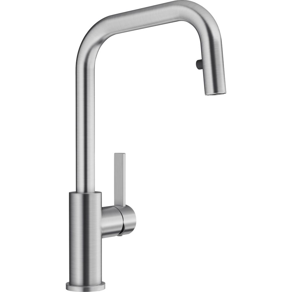 BLANCO JANDORA-S köögisegisti harjatud roostevaba teras kõrge kaarega väljalaskeava tõstab esile harjatud roostevabast terasest viimistluse rafineeritust, võimaldades samal ajal pottide ja vaaside hõlpsat täitmist. Tänu juhthoova vertikaalsele neutraalasendile tagab selle disain ka täiendava liikumisvabaduse, kui see on paigaldatud vastu seinu. Ja voolikuvalikut otsivad kliendid hindavad JANDORA-S mudeli varjatud allatõmmatavat voolikut.