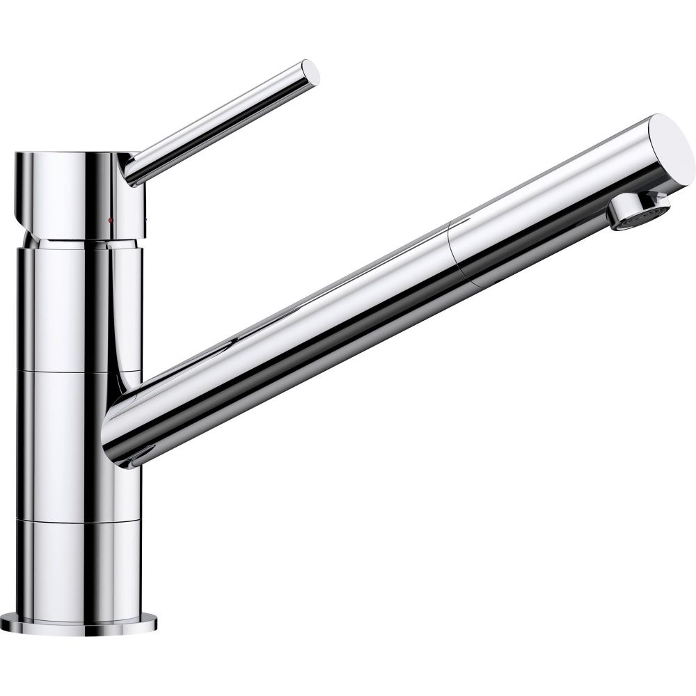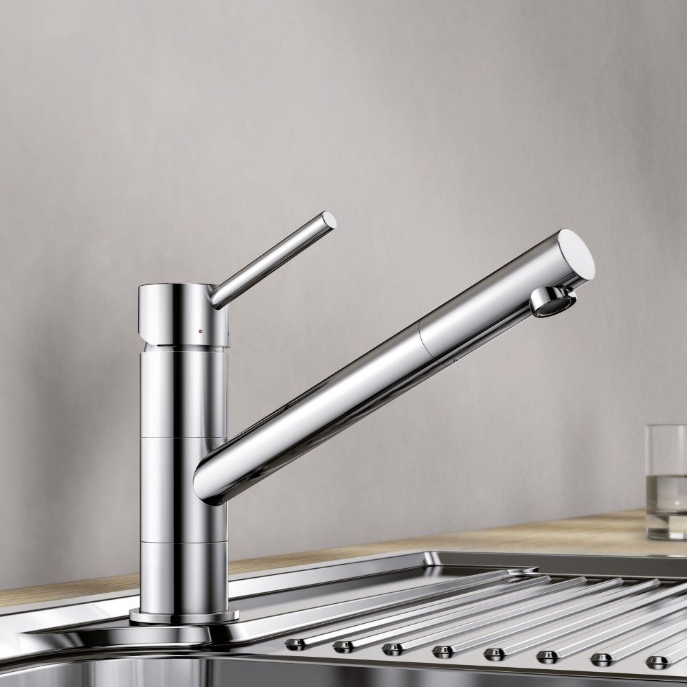 BLANCO KANO köögisegisti kroom on silmapaistvad oma esteetilise disaini ja sihvaka kuju poolest. Otsa ja juhtelemendi puhtad jooned ja ümar disain annavad sellele segistikraanile õrna välimuse. Sellisena sobivad KANO segistid suurepäraselt kõikvõimalikesse erinevatesse interjööristiilidesse. Veelgi enam, mudelid on saadaval nii kroomitud versioonis kui ka mitmesugustes värvitoonides, võimaldades kombineerida oma KANO segisti sama tooni graniidist valamuga. Teie valamu muutub seega pilkupüüdvaks funktsiooniks harmoonilises köögikujunduses. BLANCO seeria KANO on muljetavaldav ka funktsionaalsuse poolest: tila ülespoole tõusev joon sobib eriti hästi kompaktsete valamute jaoks. S-versiooni tila saab pöörata 120 kraadi või fikseeritud versiooni puhul 360 kraadi, muutes pesemise ja kraanikausi juures töötamise veelgi mugavamaks. Teie KANO segisti saab soovi korral varustada ka väljatõmmatava tilaga, mis teeb suuremate pottide ja pannide puhastamise imelihtsaks.