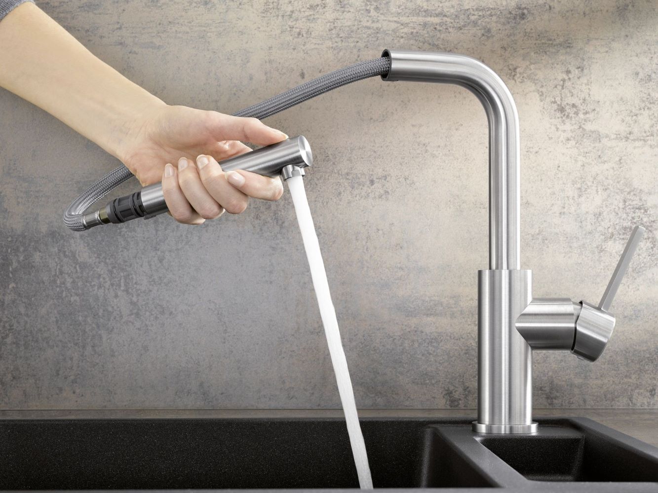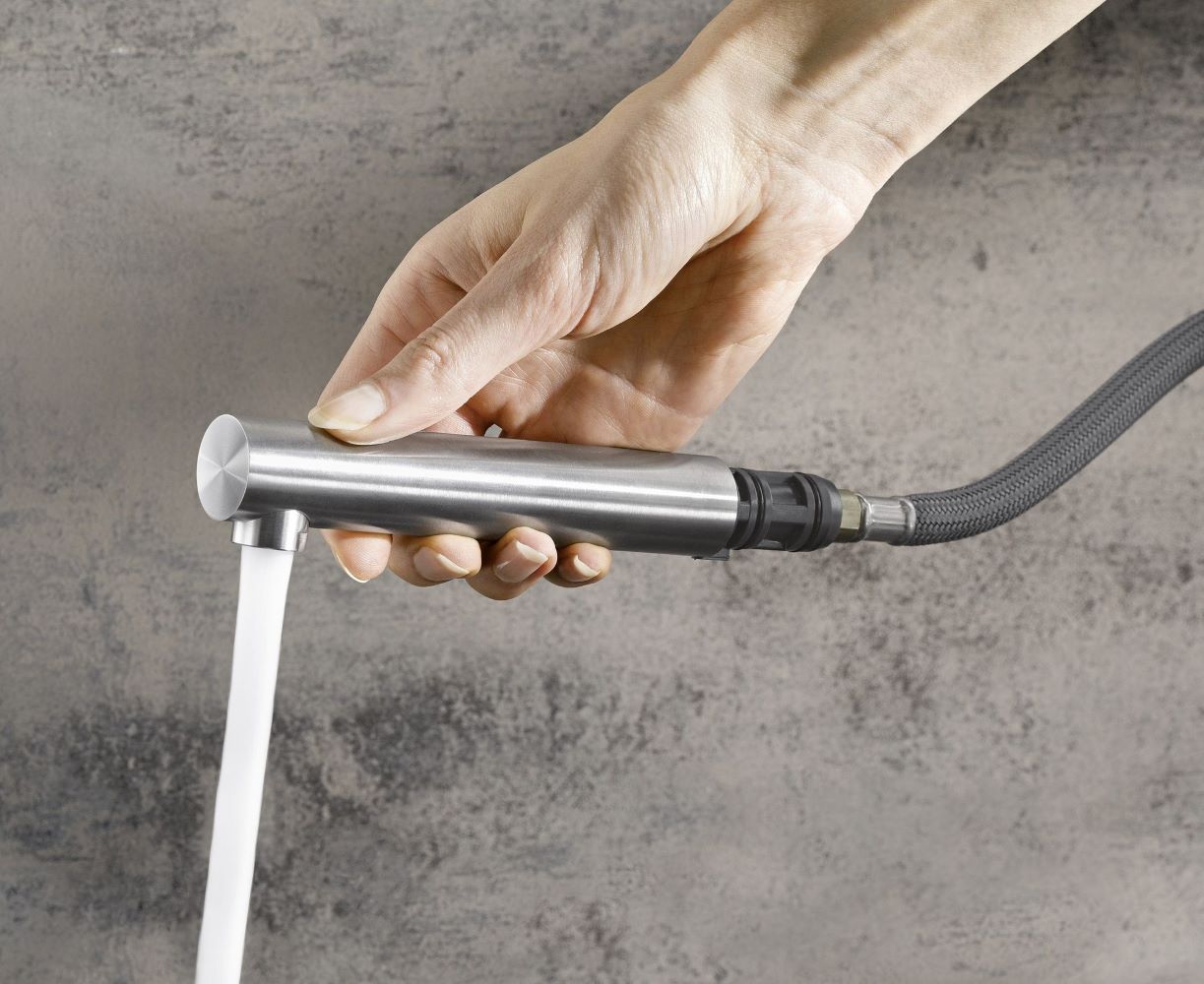 Väljatõmmatav pihustusvoolik suurema ulatuse ja mugavuse tagamiseks.