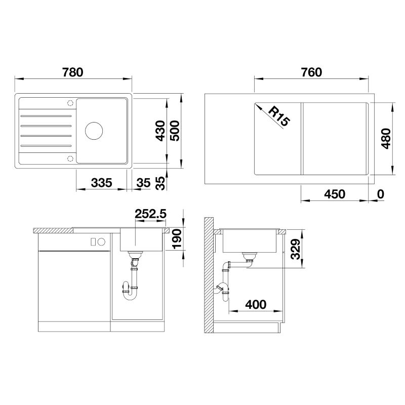 - Valamu mõõdud (L x S): 780 x 500 mm