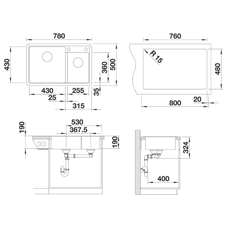 - Valamu mõõdud (L x S): 780 x 500 mm