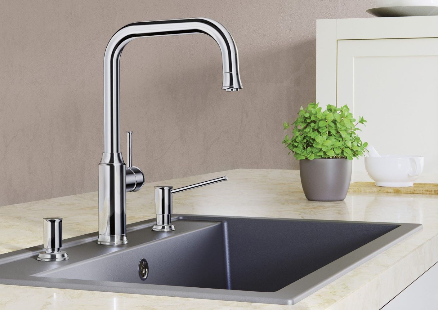 BLANCO LIVIA-S köögisegisti on nii praktiline kui ka mitmekesine: segisti, mis moodustab osa üldisest süsteemi disainist, on saadaval ka sobiv seebi dosaator ja pop-up äravoolunupp. Sarnaselt segistiga on nendel osadel kaunid dekoratiivsed elemendid, eriti üleminekukohtades.