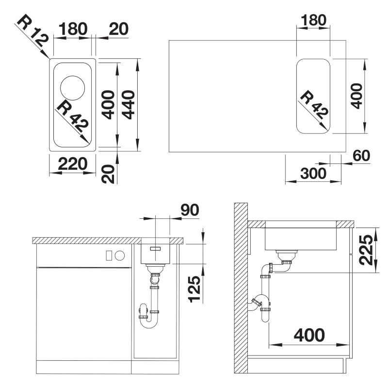 - Valamu mõõdud (L x S): 220 x 440 mm