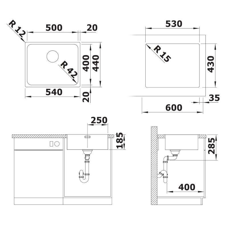 • Valamu mõõdud (L x S): 540 x 440 mm