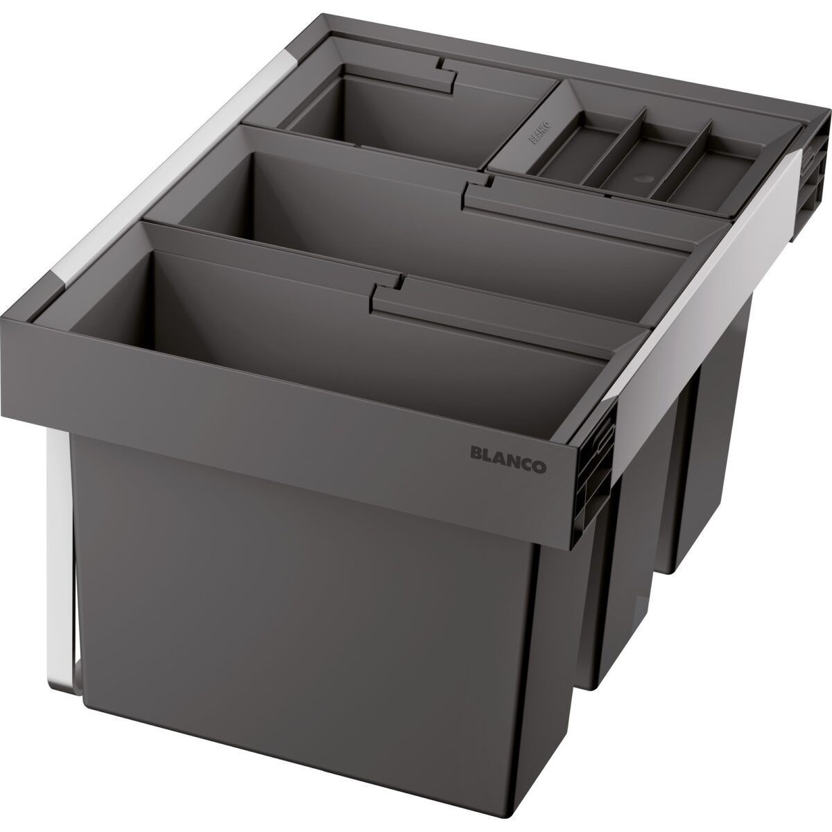 BLANCO sorter FLEXON II LOW 60/4 – kui valamu aluskapp on juba hõivatud veesüsteemi komponentidega, nagu filter või jäätmepurustaja ja pakub seetõttu vähe ruumi jäätmete eraldamiseks ja aluskapi korraldamiseks, paigaldatakse FLEXON II Low teise jagatud sahtlitega aluskappi kas alumisse sahtlisse või väga ergonoomiliselt tööpinna alla.