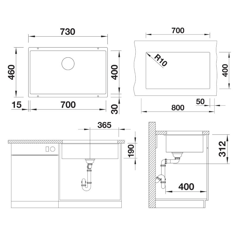 • Valamu mõõdud (L x S): 730 x 460 mm