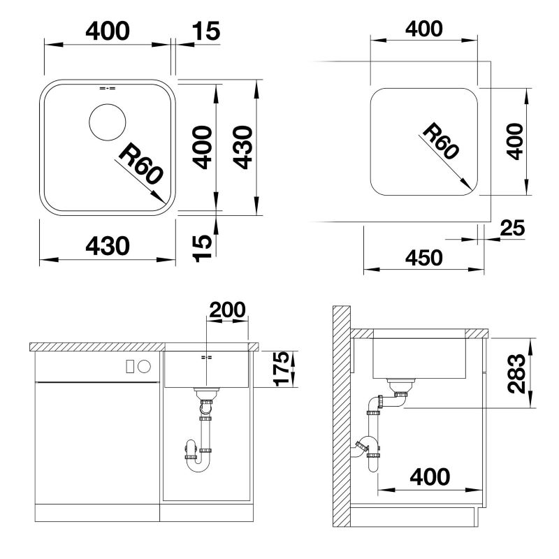 - Valamu mõõdud (L x S): 430 x 430 mm