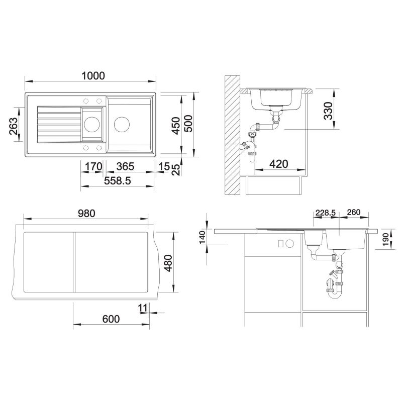 - Valamu mõõdud (L x S): 1000 x 500 mm