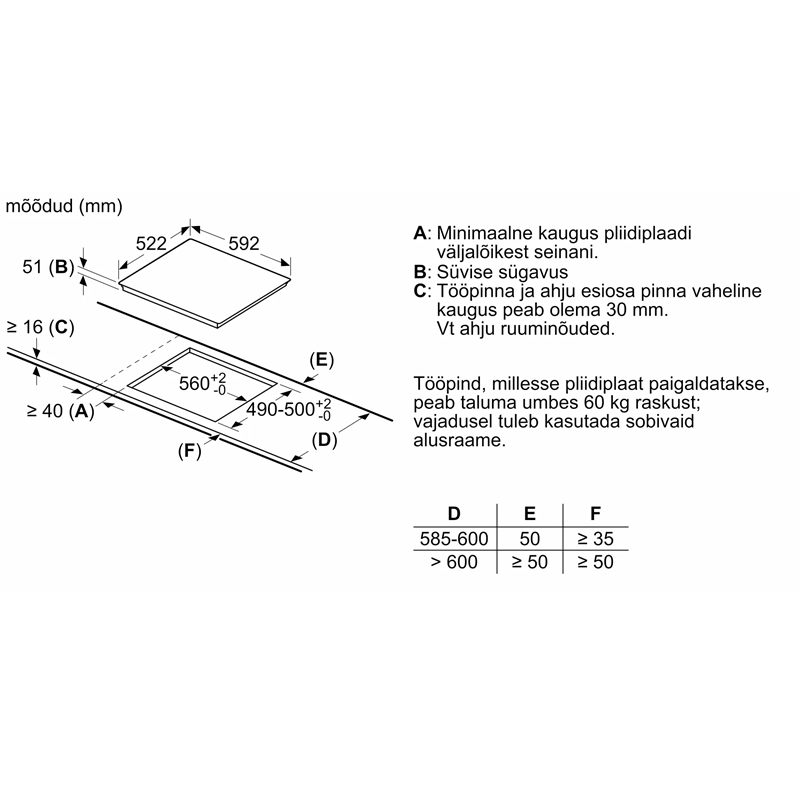 - Toote mõõdud (KxLxS): 51 x 592 x 522 mm