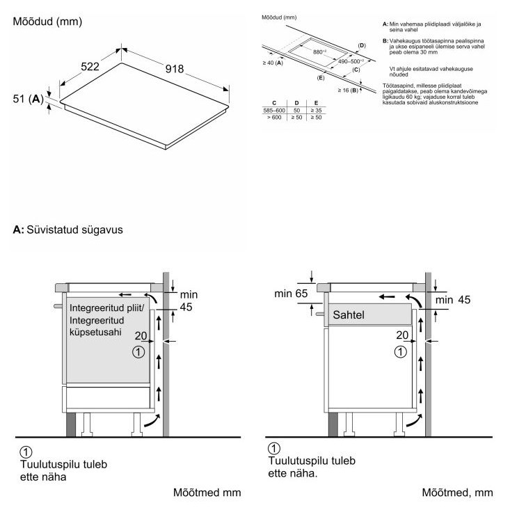 - Toote mõõdud (KxLxS): 223 x 918 x 522 mm