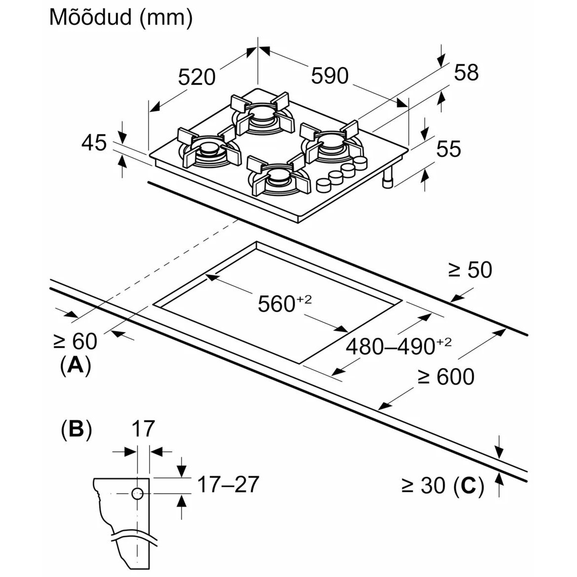 - Toote mõõdud (KxLxS): 54,5 x 590 x 520 mm