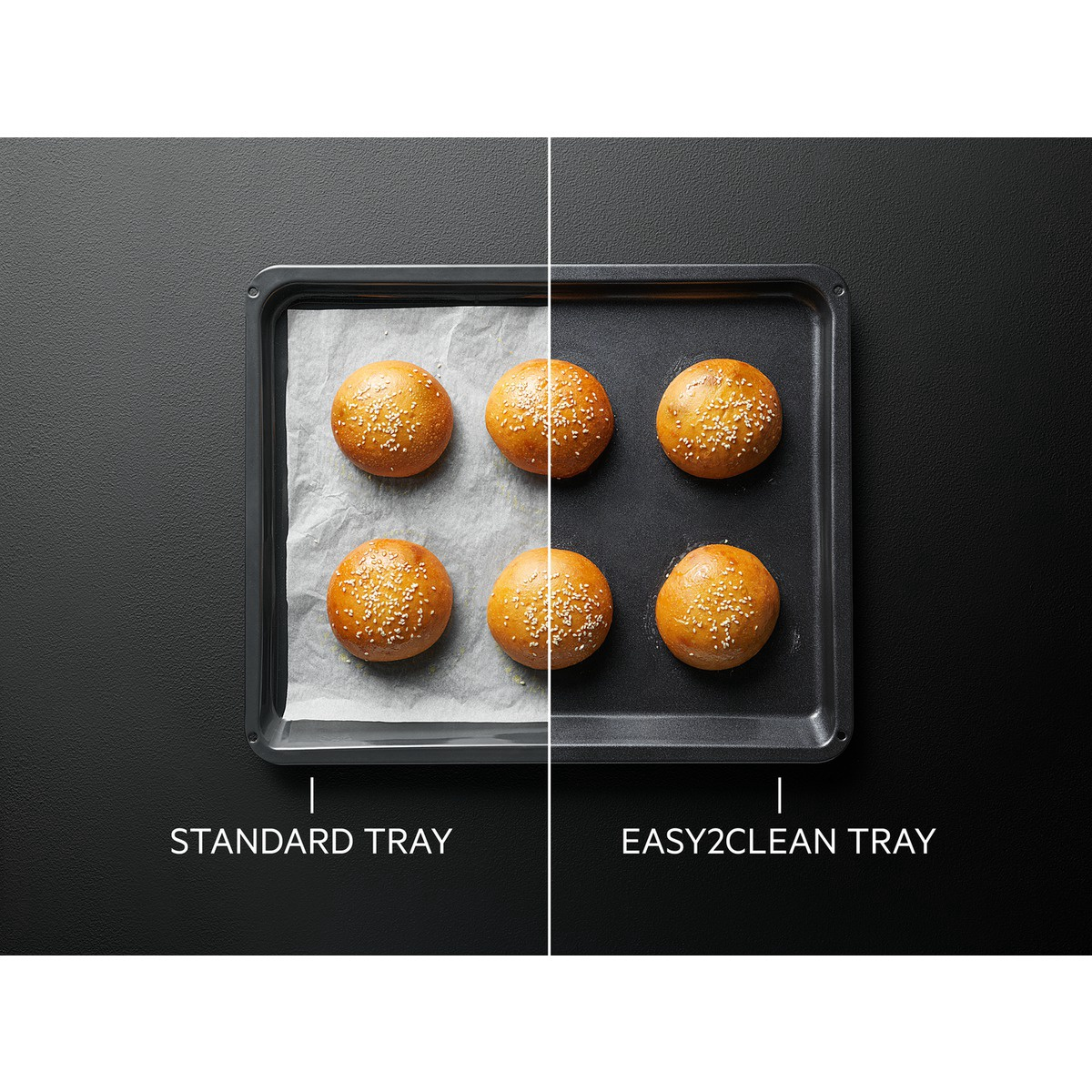 Küpsetusplaadil Easy2Clean on uuenduslik keraamiline pinnakate, mis annab teile vabaduse asetada toit otse küpsetusplaadi pinnale ning loobuda küpsetuspaberi või õli kasutamisest. Lisaks ei jää selle külge mustus kinni ja külgekõrbenud toidujäägid on nüüd minevik.
