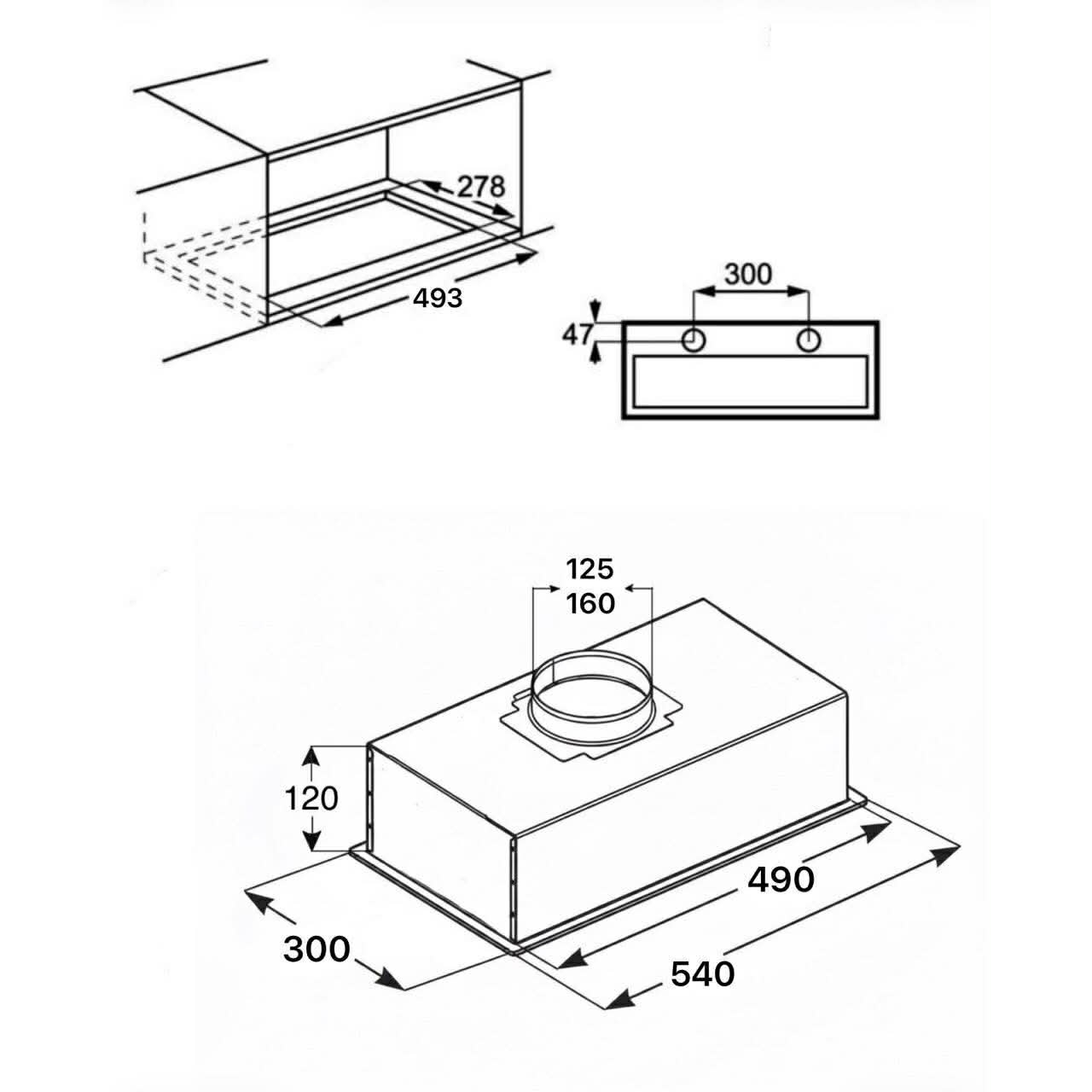 - Ventilatsiooniühendus Ø: 125 või 160 mm