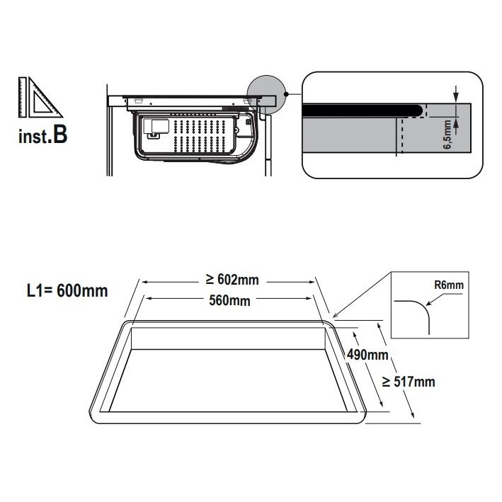 | Raami tüüp | lõigatud serv 90°, süvistatav |