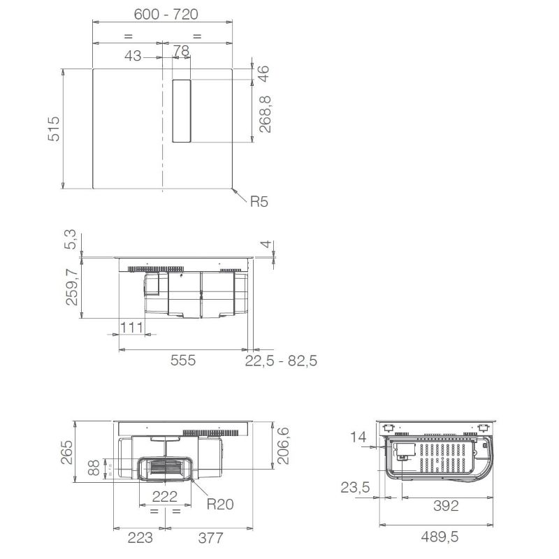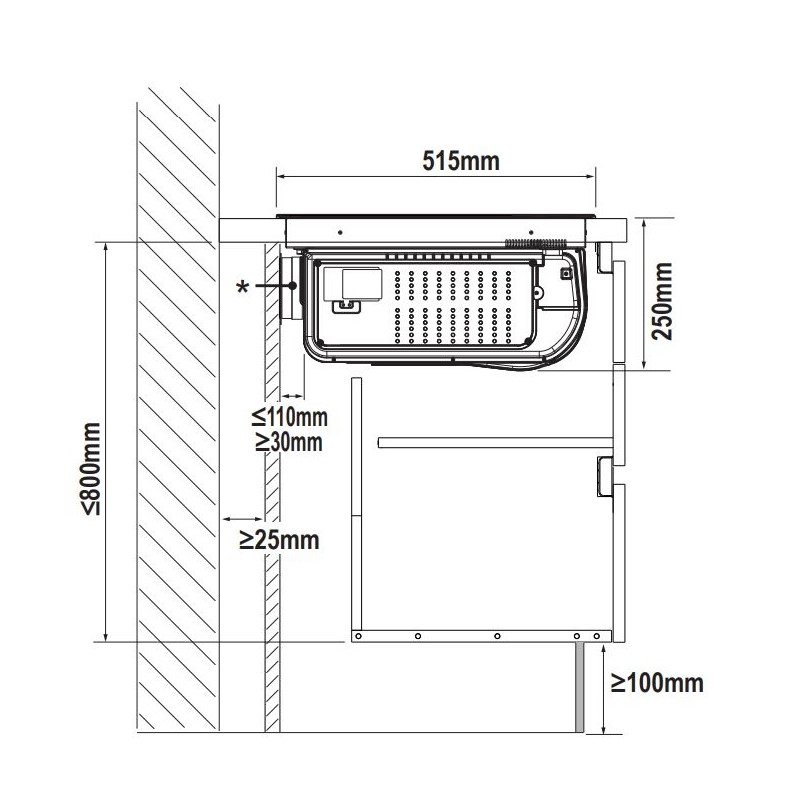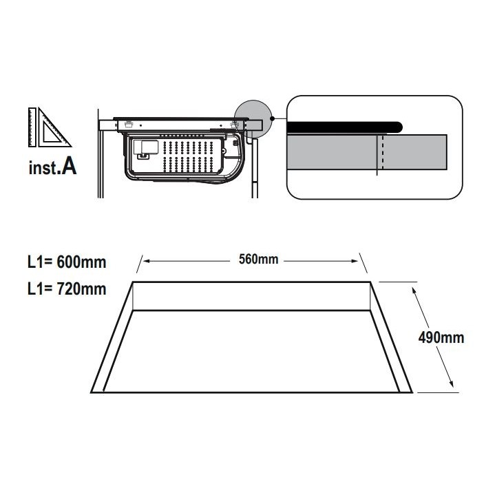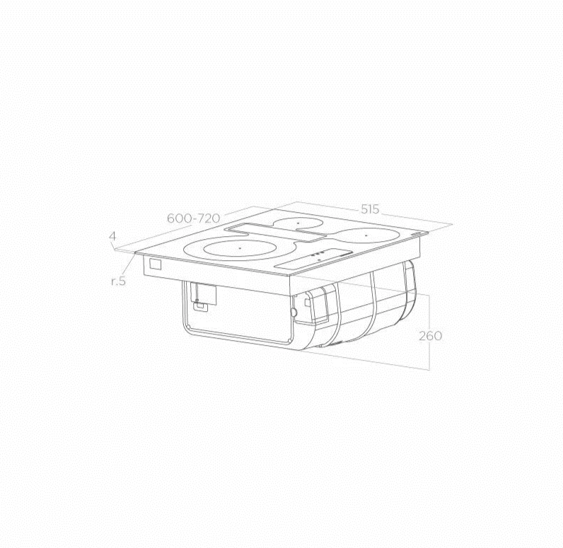 Õhupuhastaja juhtimine pliidiplaadilt: jah - Õhuvool retsirkulatsiooniga (min/max/intensiiv): 190 / 395 / 490 m³/h