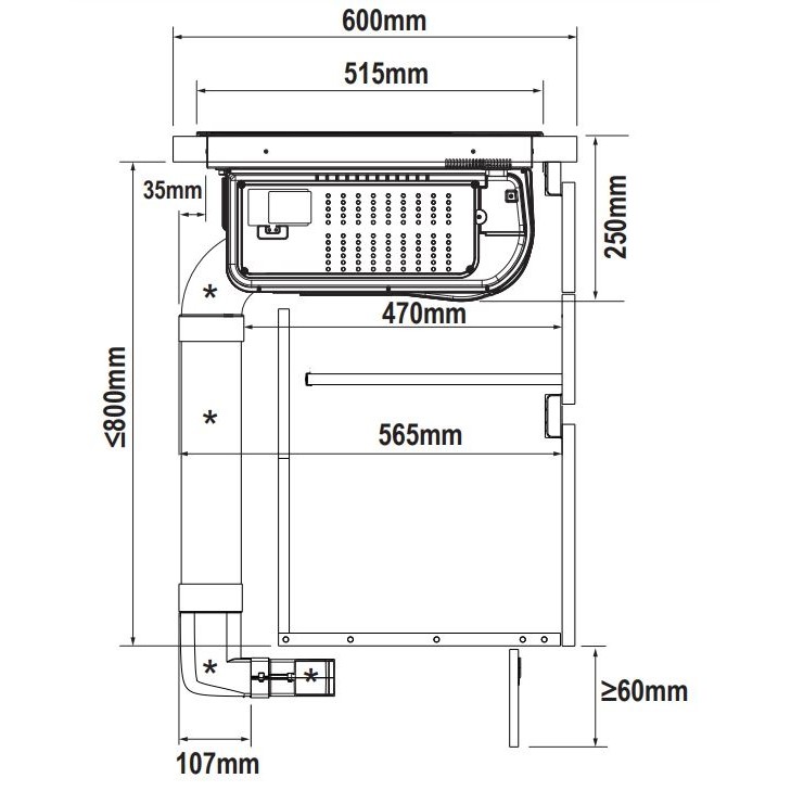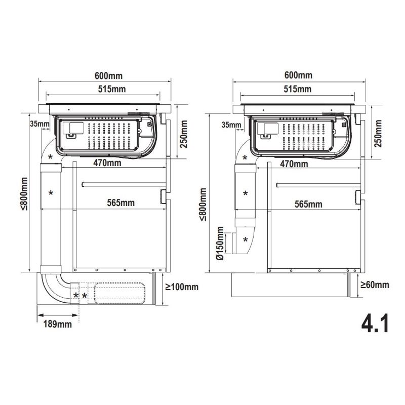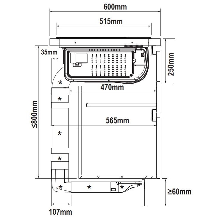 - Retsirkulatsiooniga väljatõmme / äratõmme toruühenduse kaudu (tarvikud on saadaval eraldi)