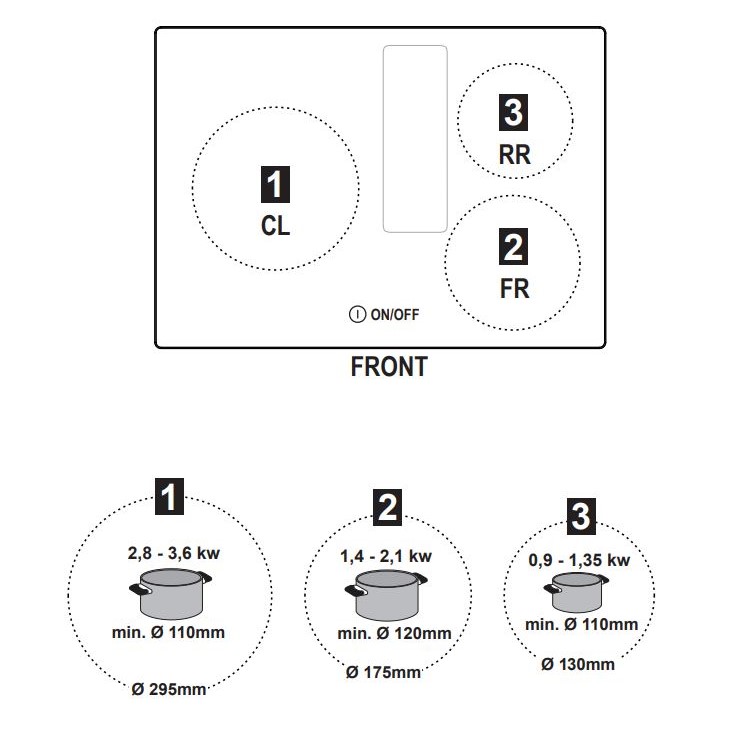 Vasak eesmine keeduala: Ø 30 cm – 2,5 / 3,6 kW