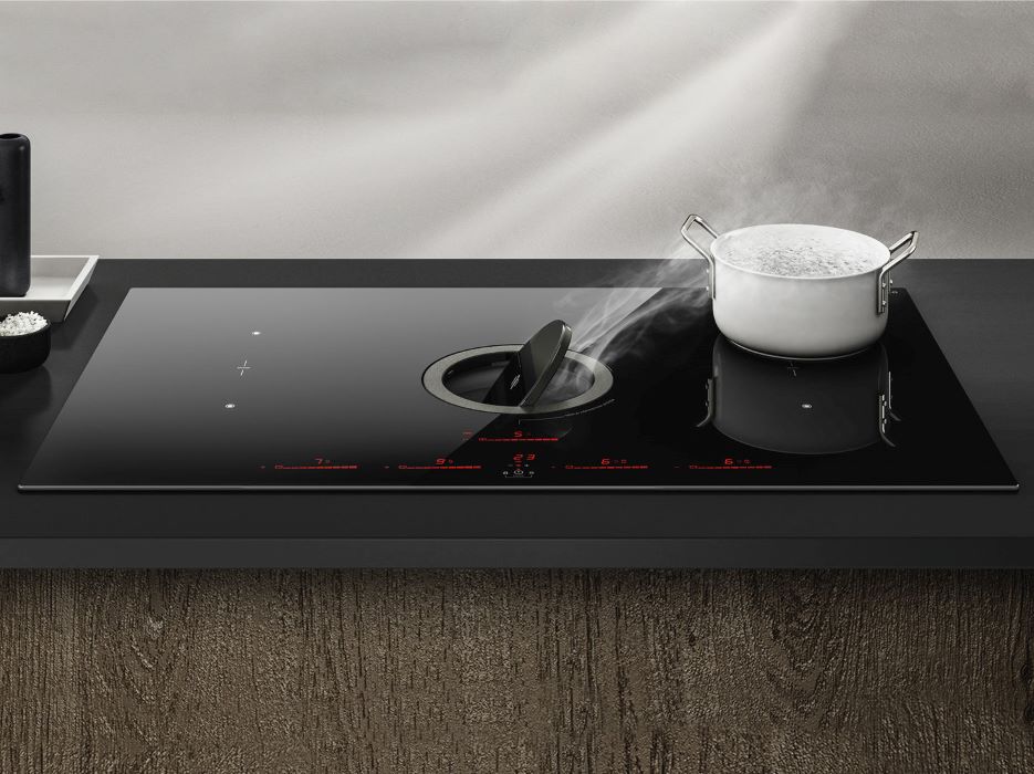 Elica pliidiplaat koos õhupuhastiga NIKOLATESLA SWITCH EVO BL/A/83 ühendab aurude ja lõhnade eemaldamise praktilised funktsioonid ja praktilise töötasapinna.