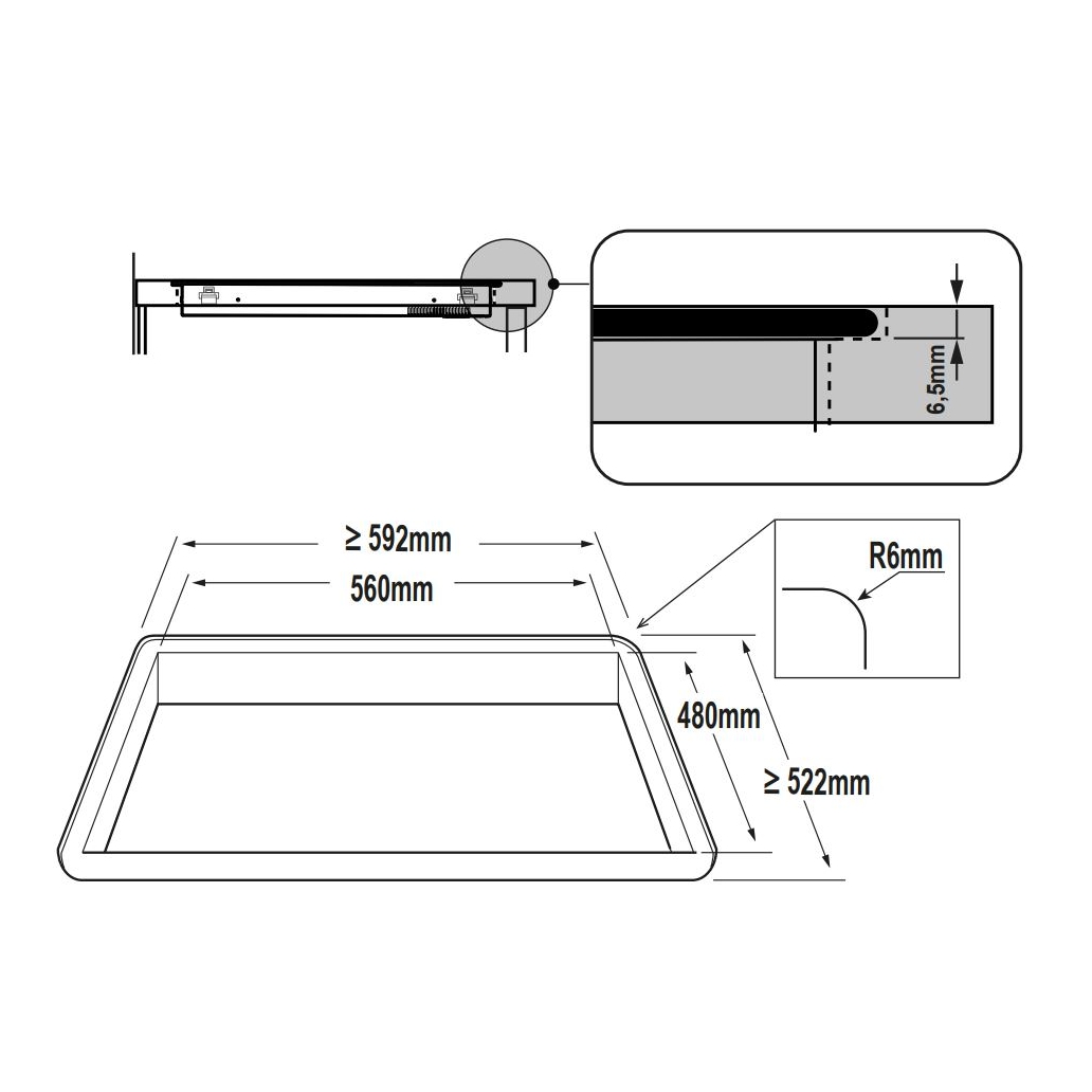 | Raami tüüp | lõigatud serv 90°, süvistatav |