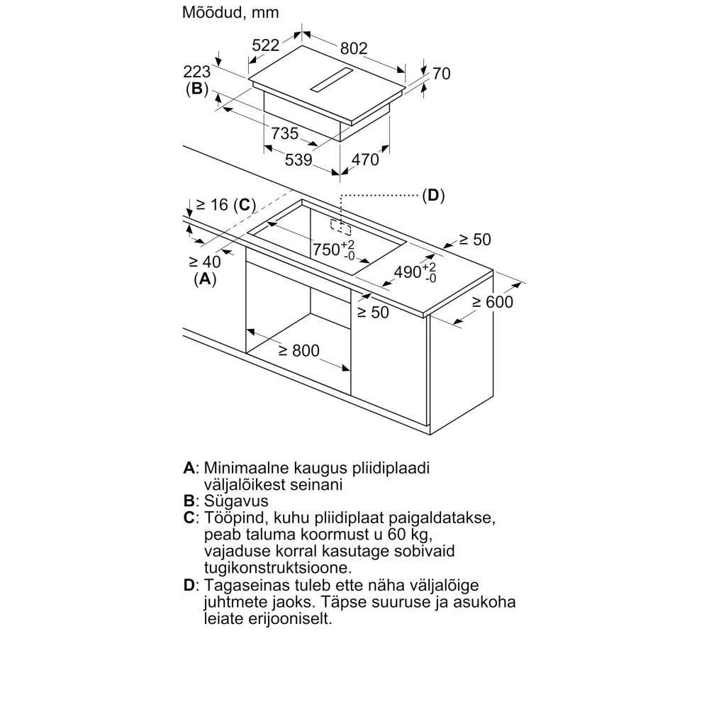 - Toote mõõdud (KxLxS): 223 x 802 x 522 mm