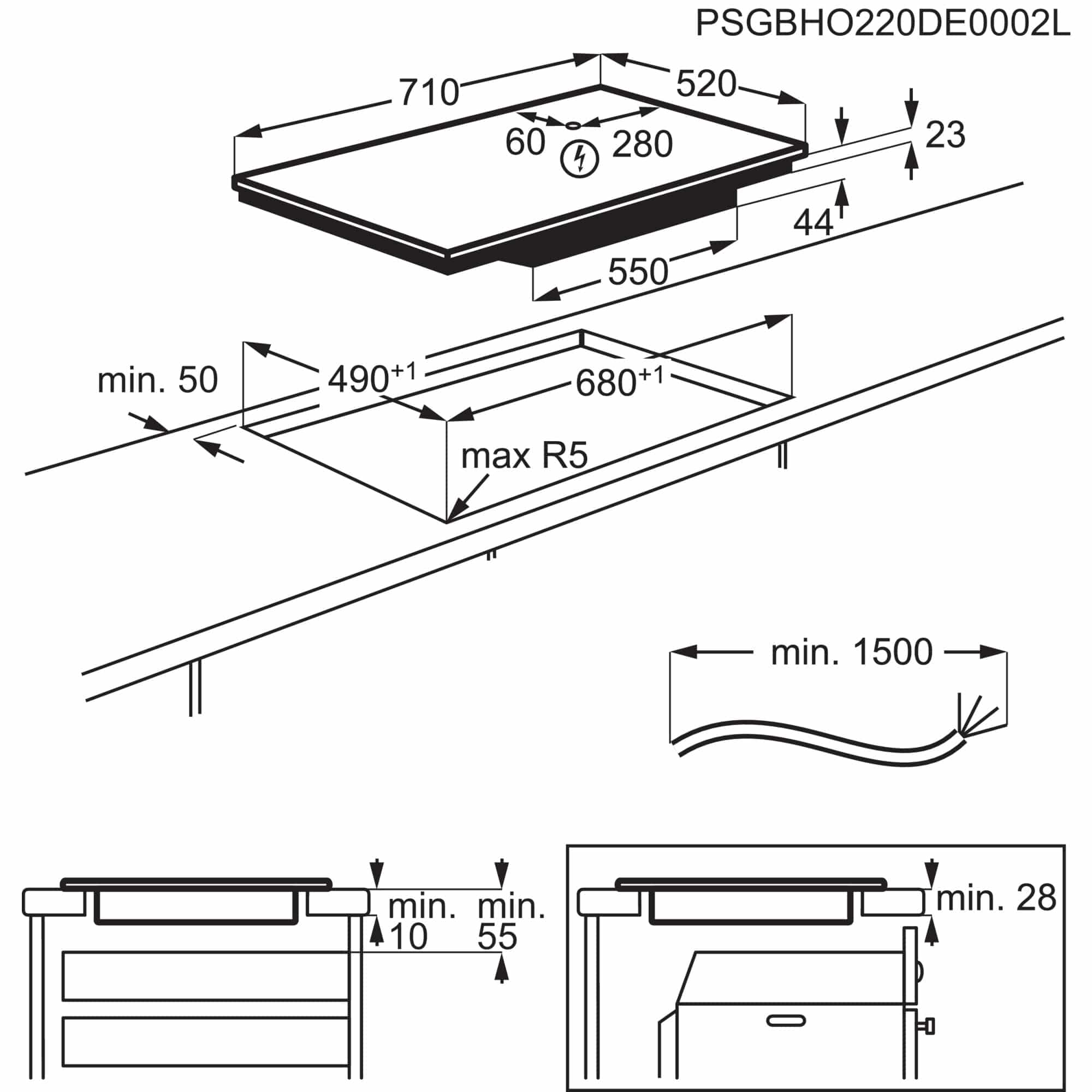 - Tööpinnapealne paigaldus / viltulõigatud raamiga pliidiplaat