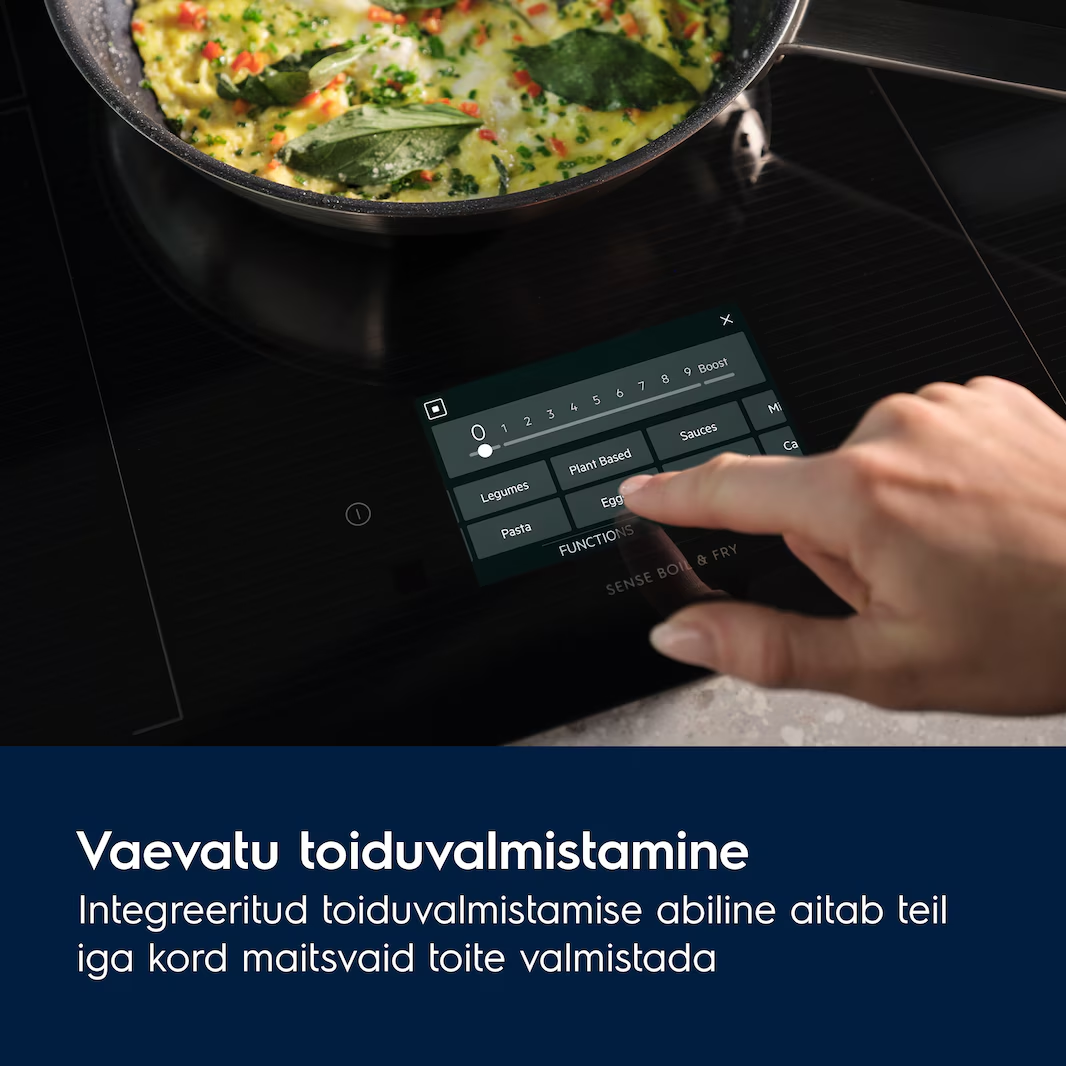 Induktsioonpliidiplaat Electrolux EIS87583 SenseBoil & Fry toiduvalmistusandurid teavad intuitiivselt, millal kuumust reguleerida, et vältida ülekeetmist. Andurid hoiavad teie panni ideaalsel temperatuuril, et saavutada ühtlased tulemused ja säästa energiat – olenemata sellest, mida valmistate.