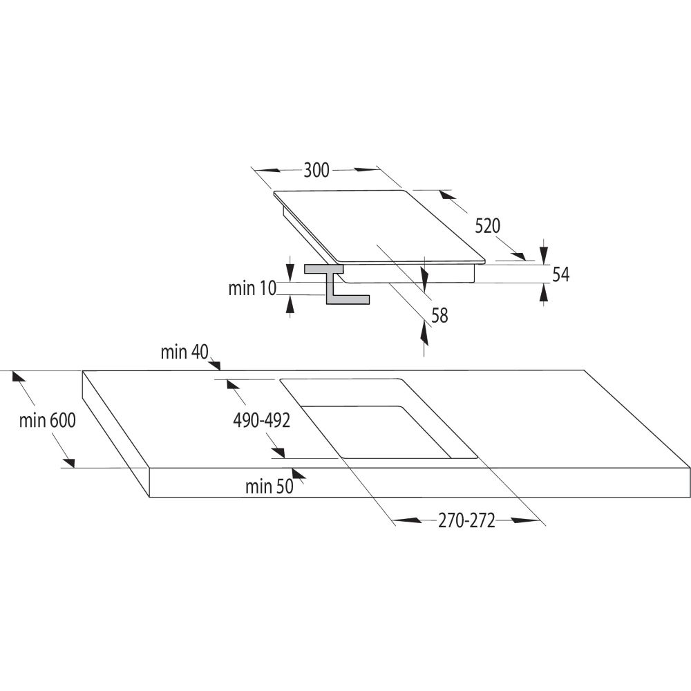 - Viltulõigatud raamiga pliidiplaat, tööpinnapealne paigaldus