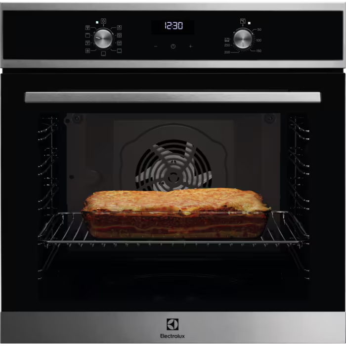 Integreeritav ahi Electrolux EOF5F70X küpseb kõik alates krõbedast röstitud kanast kuni õrnade beseedeni ühtlaselt. Meie ahi tagab, et sisemine temperatuur oleks läbivalt ühtlane, kuna ventilaator ajab õhku ja kuumust ringi. Seega pole teil enam vaja roogasid pöörata ega plaate sättida.