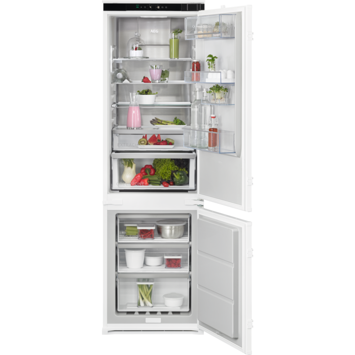 Integreeritav külmik AEG TSC8M181DS 8000 Cooling 360° külmik-sügavkülmik kaitseb toitu, jaotades temperatuuri igal riiulil 30% paremini. Seda jahutatakse pidevalt läbi mitme õhukanali ning roostevaba teras jätab teie köögile elegantse ja kõrgklassi mulje.