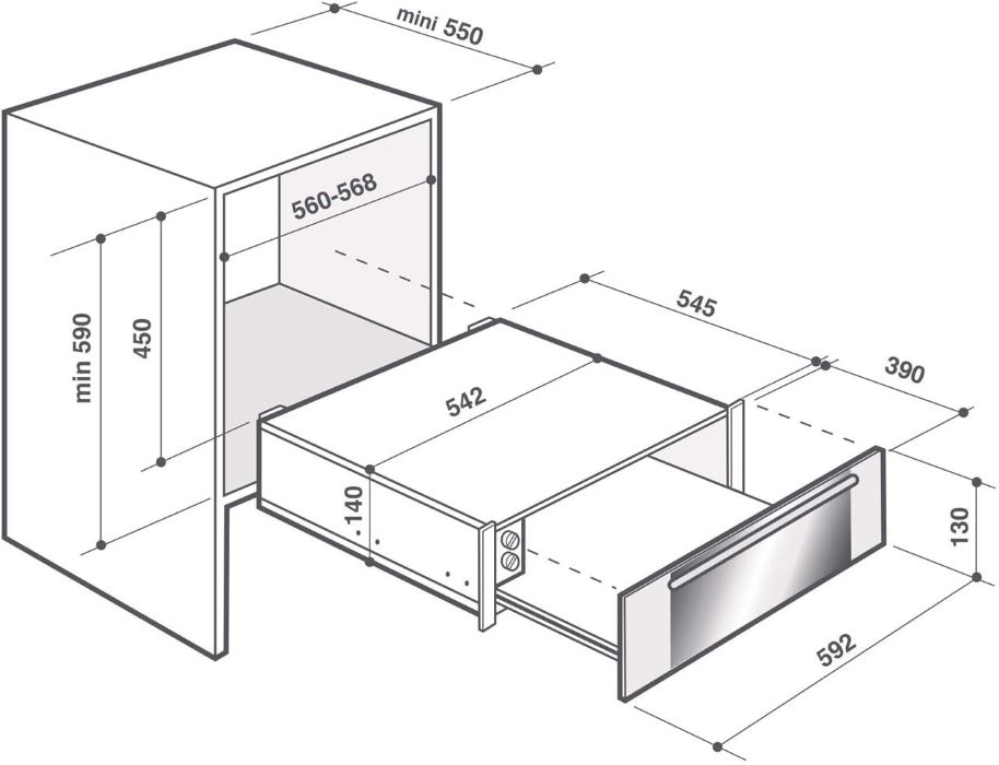 - Sobib integreerimiseks 60 cm laiusega ahju, espressomasina, mikrolaineahju või auruahju alla