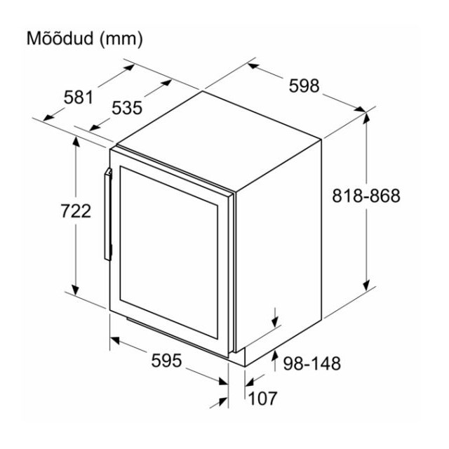 Tööpinna alla integreeritav veinikülmik laiusega 60 cm.