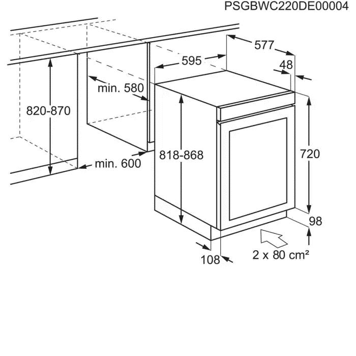 Tööpinna alla integreeritav veinikülmik laiusega 60 cm.