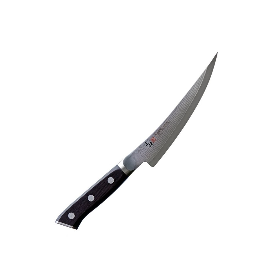 Kondistamisnuga 165mm Mcusta Zanmai Classic Black Damascus – see kitsas ja terav nuga sobib hästi lihunikutööks, nt kontide lihast puhastamiseks ja liha töötlemiseks, kõõluste ja kelmete eemaldamiseks jne.