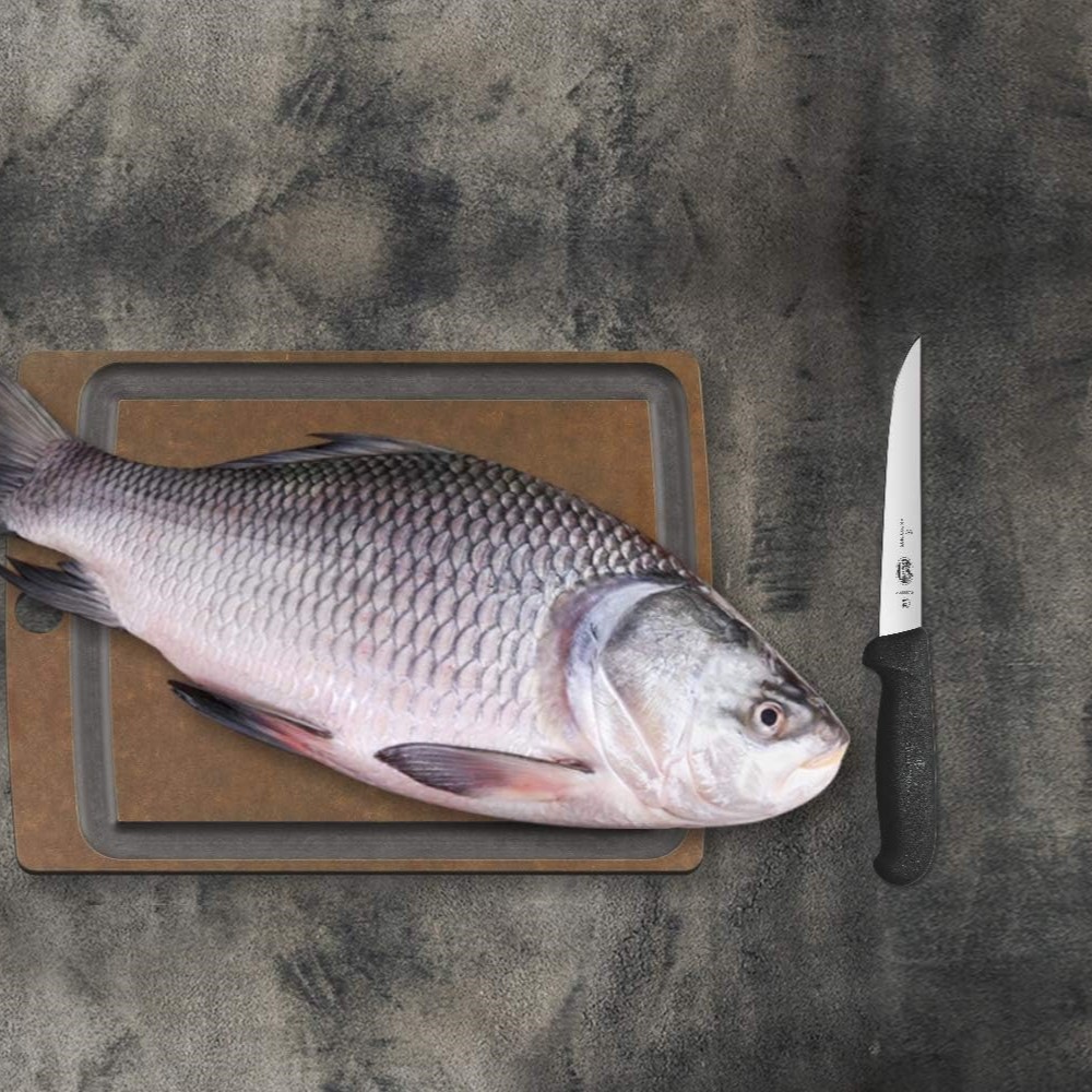 Käepide on valmistatud Fibroxist. Sellel on kummi omadused, kuid seda töödeldakse nagu plastikut. Sellisena on Fibrox üsna jäik. Peamine eelis on see, et isegi kui teie käed on märjad või kui kannate kindaid, ei pea te kartma, et nuga käest libiseb. Lisaks on Fibroxi nuge lihtne puhastada, kuna need on nõudepesumasinas pestavad. (Siiski soovitame neid nuge alati käsitsi puhastada, et säilitada noa teravus).