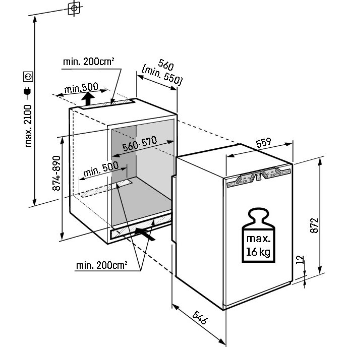 - Toote mõõtmed (K x L x S): 87,2 x 559 x 546 mm