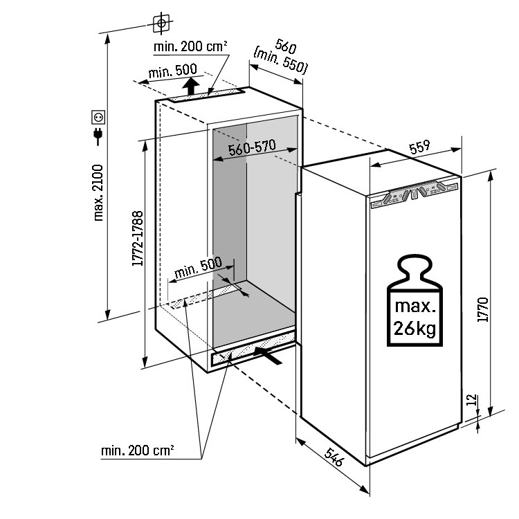 Integreeritav sügavkülmik 177 cm